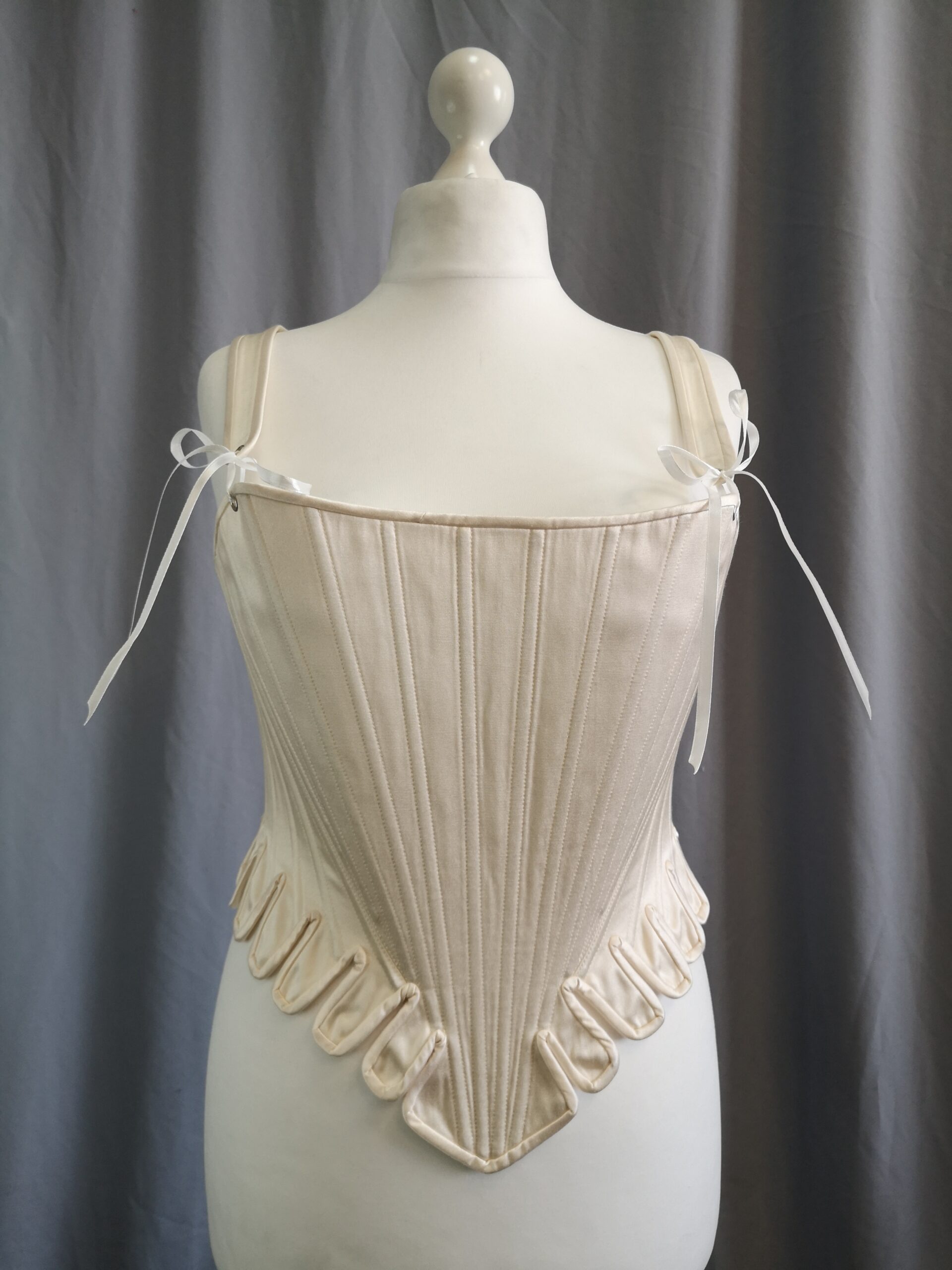 1820s Biedermeier Corset, White Cotton Regency Long Stays, Wooden Busk Regency Stays