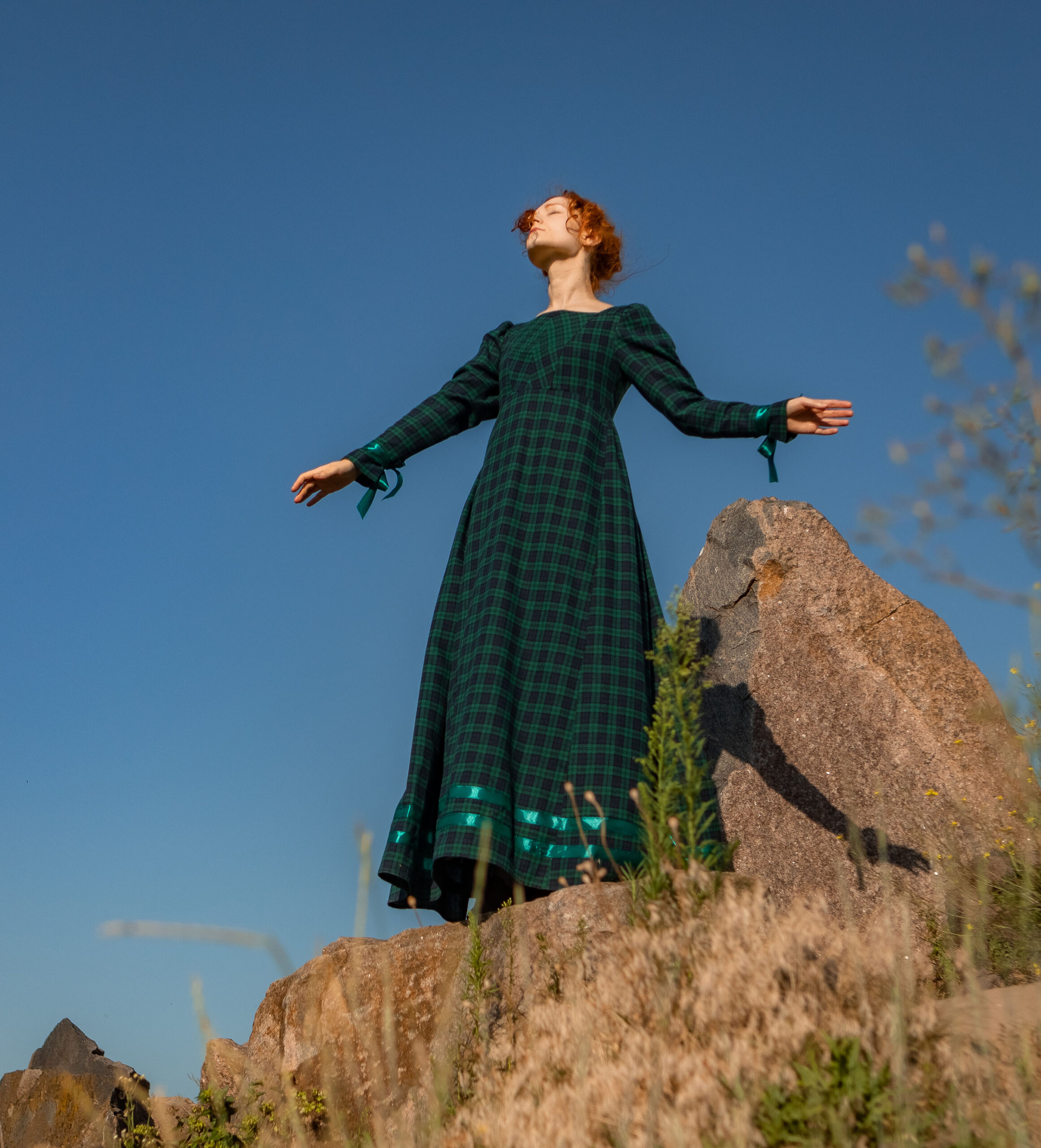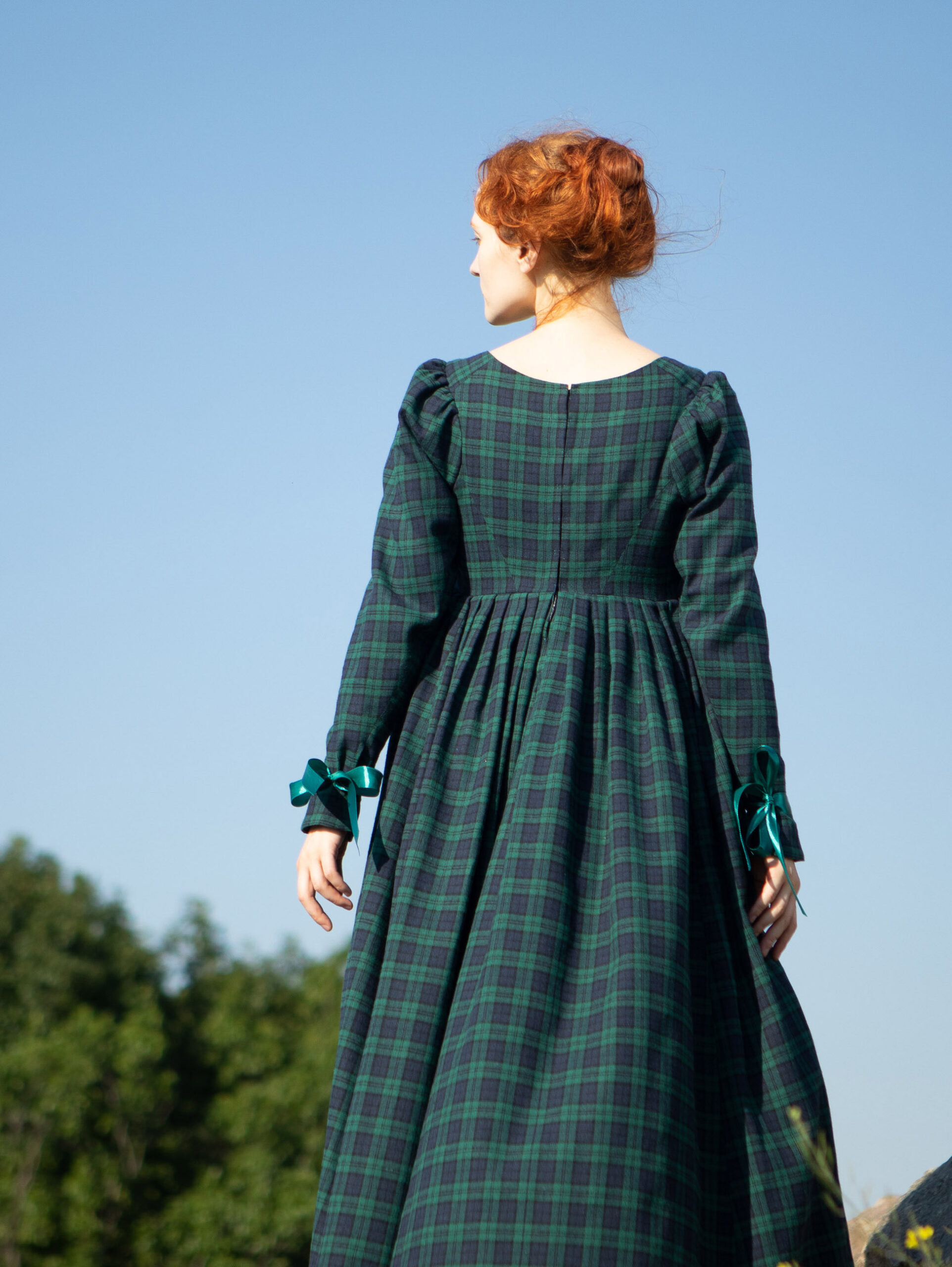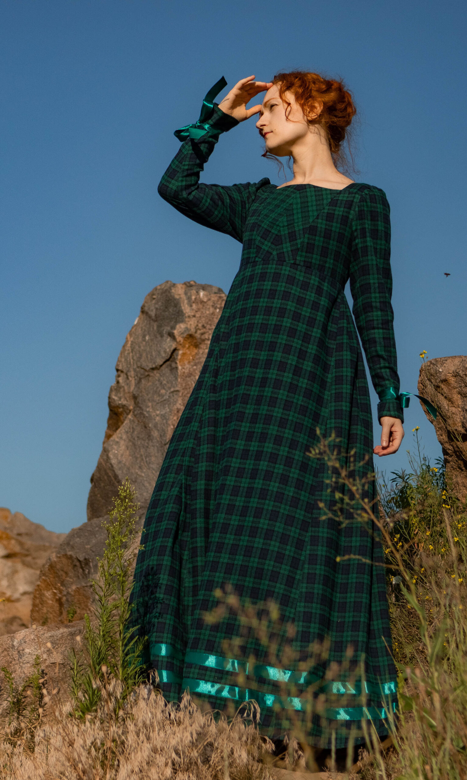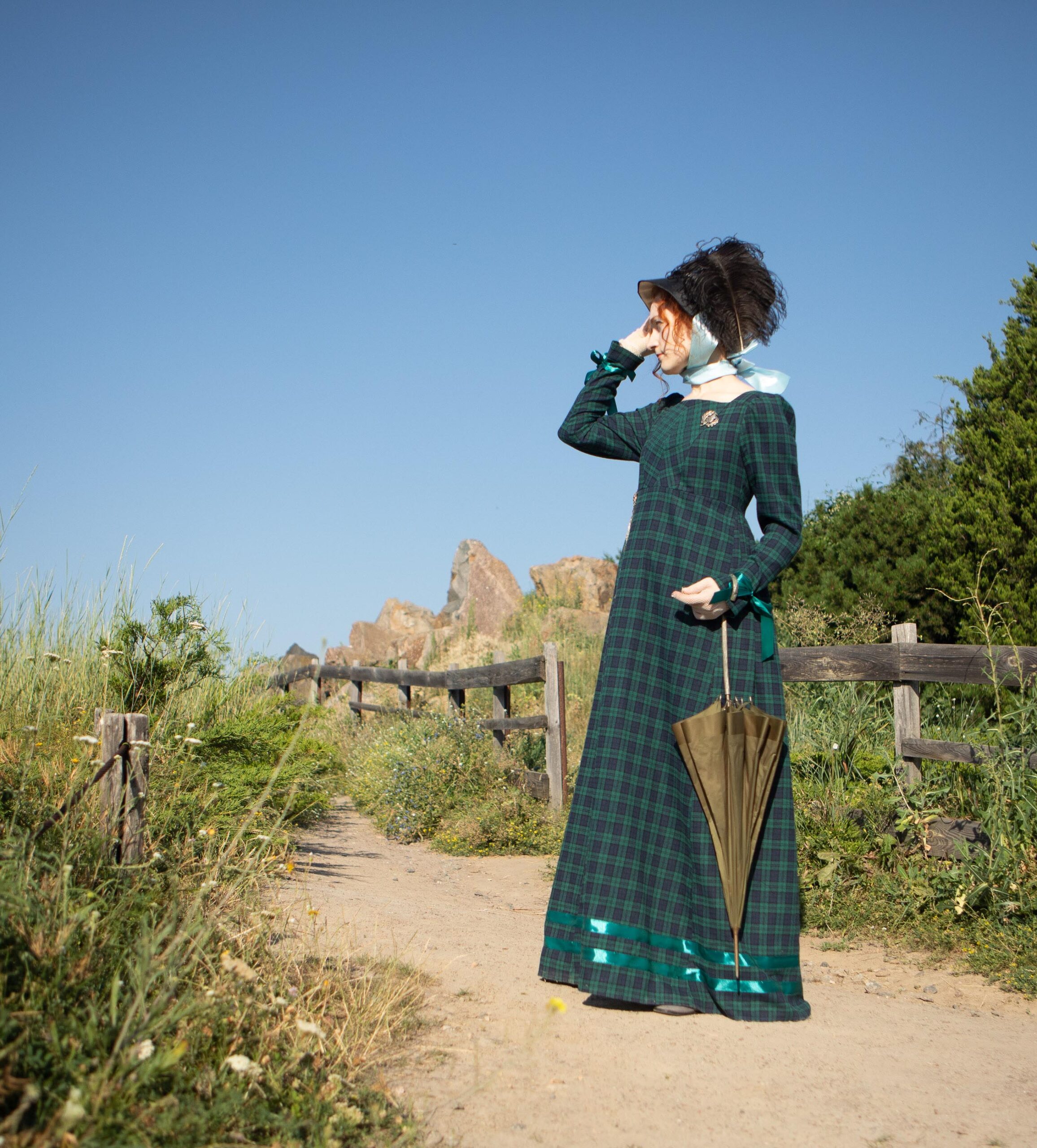 My heart’s in the Highlands – Scottish themed 1800s late Regency gown for long countryside walks and rainy day visits. Made of warm and soft plaid cotton fabric, it feels rather comfortable for cool weather.